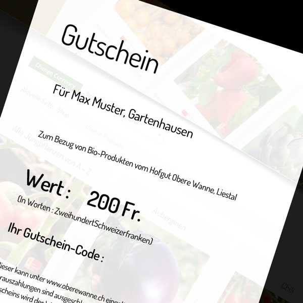 • Der Code kann dann ganz am Schluss beim Bestellvorgang im entsprechenden Feld eingegeben werden und wird der Betrag wird der Bestellung direkt abgezogen.