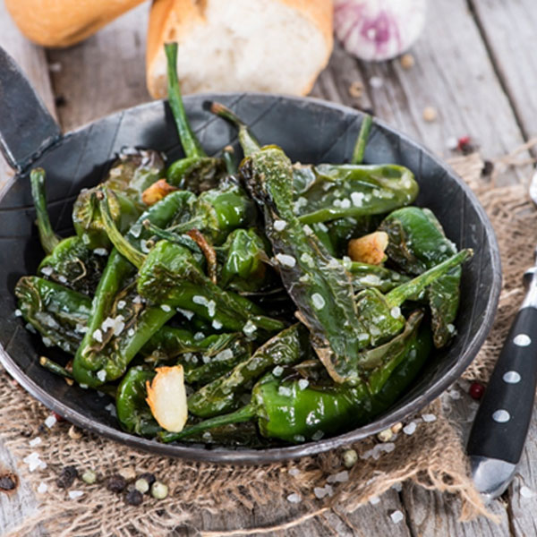 Pimientos de Padrón ist ein klassischer Chili aus Spanien, von milder bis mittlerer Schärfe. Die grünen schrumpeligen Früchte werden gegrillt und als Vorspeise oder Beilage gegessen. Diese Sorte ist von variabler Schärfe. An der gleichen Pflanze können die Früchte von mild bis mittelscharf tendieren. Es findet ganz bewusst keine Selektion statt, damit dieser unregelmässige Schärfegrad erhalten bleibt. In der spanischen Küche werden die Schoten im Ganzen mit den Stielchen gegrillt oder in der Pfanne mit Knoblauch in Öl gebraten und anschliessend mit grobem Salz bestreut. Diese Chilisorte erhielt ihren Namen nach der Stadt Padrón, wo sie feldmässig angebaut wird.
